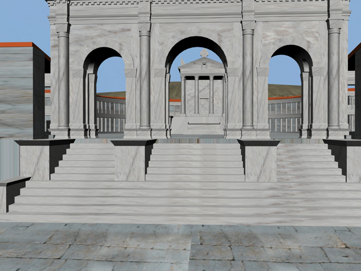 View from the Tiberial Platea throught the Propylon into the Imperial Cult Sanctuary.
