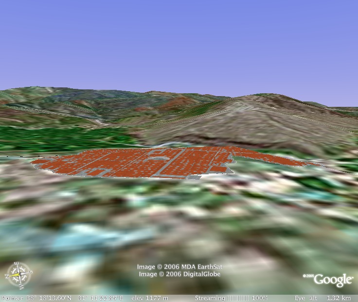 A low angle view from the West sowing the hill on which the sanctuary of the Anatolian moon-god Men rest above the city.