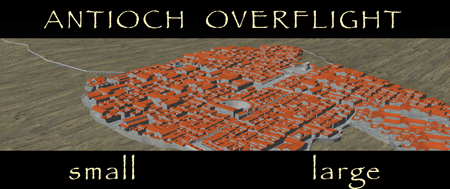 Each of these movies of the site was produced from the model of Pisidian Antioch created in 3D Studio Max®; this model has over 950,000 polygons and 35 textures. With the exception of the terracotta roof tiles, every texture is derived from digital images of the site from 2004, including the sky and the vegitation. All of the above movies were elements of the movie that was shown in the 3-panel theater of the gallery, which can be viewed via the link below.