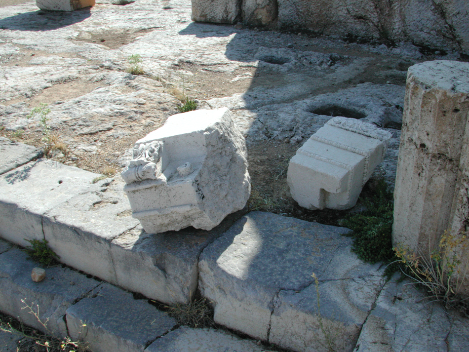 The steps of the collonade of the Imperial Cult Sanctuary with fragments of worked stone.