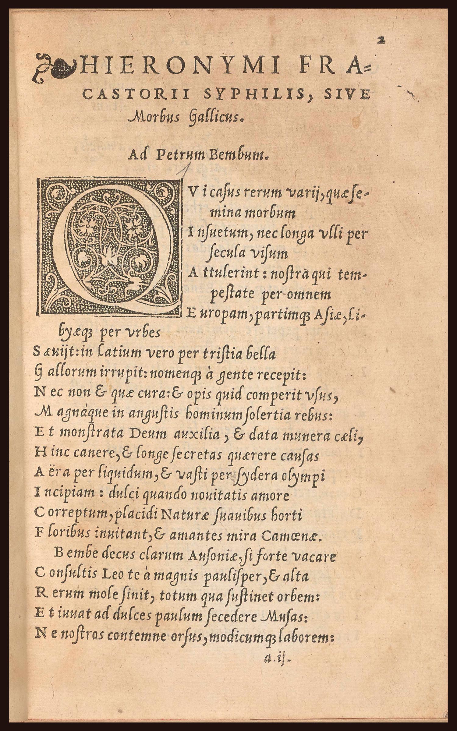 At the beginning of the sixteenth century, syphilis was a new disease in Europe. It did not even have a name yet. To the Italians it was the “French disease” (morbus gallicus). The name of this illness was coined by the polymath scholar Girolamo Fracastoro in his three-book epic poem, Syphilis, sive morbus gallicus (Syphilis, or the French Disease), first published in 1530. The poem included the story about a shepherd named Syphilis who was punished with a horrible disease for insulting Apollo.