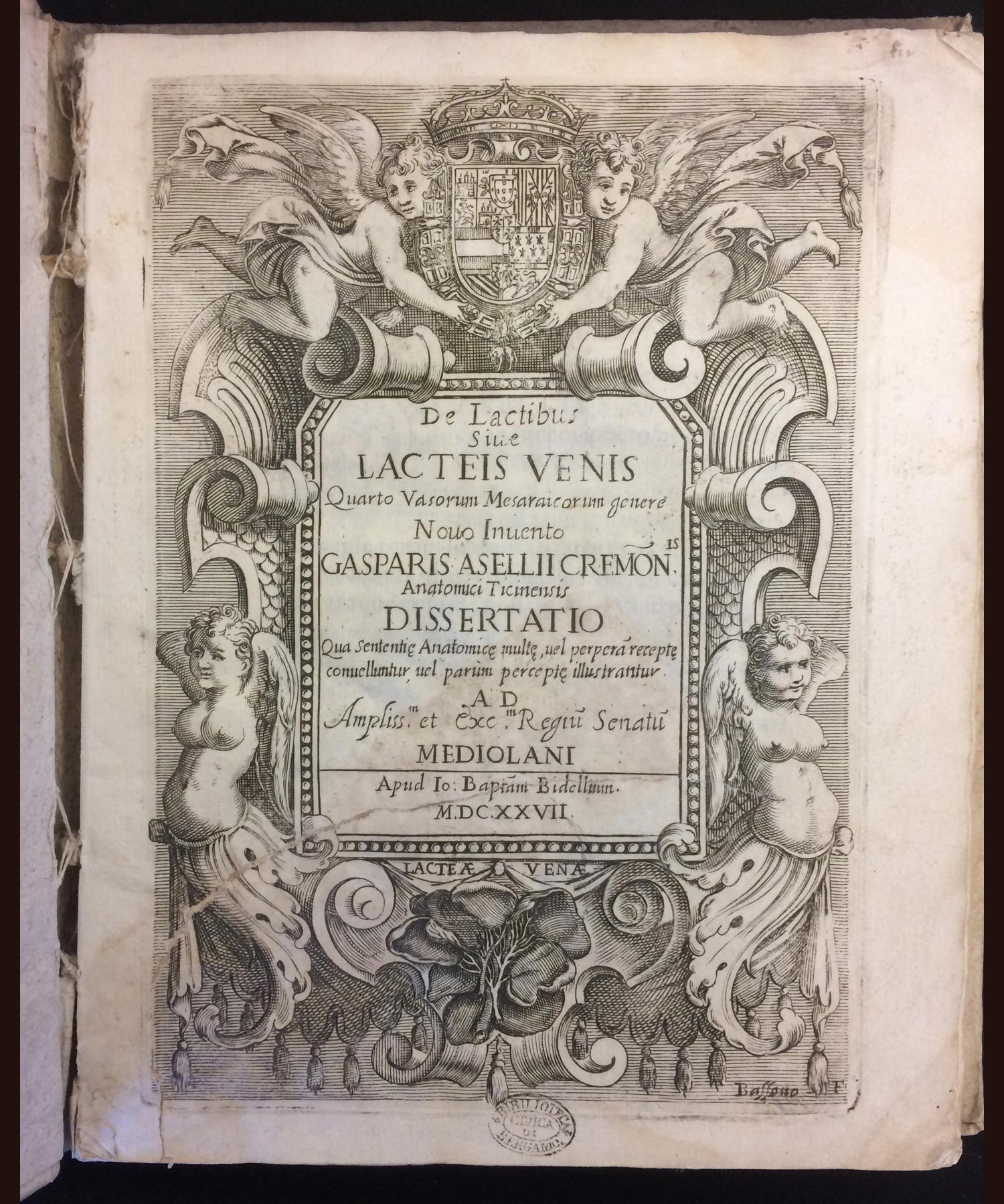 De lactibus sive lacteis venis quarto vasorum mesaraicorum genere novo invento… dissertatio Milan: Giovanni Battista Bidelli, 1627 The Le Roy Crummer Collection