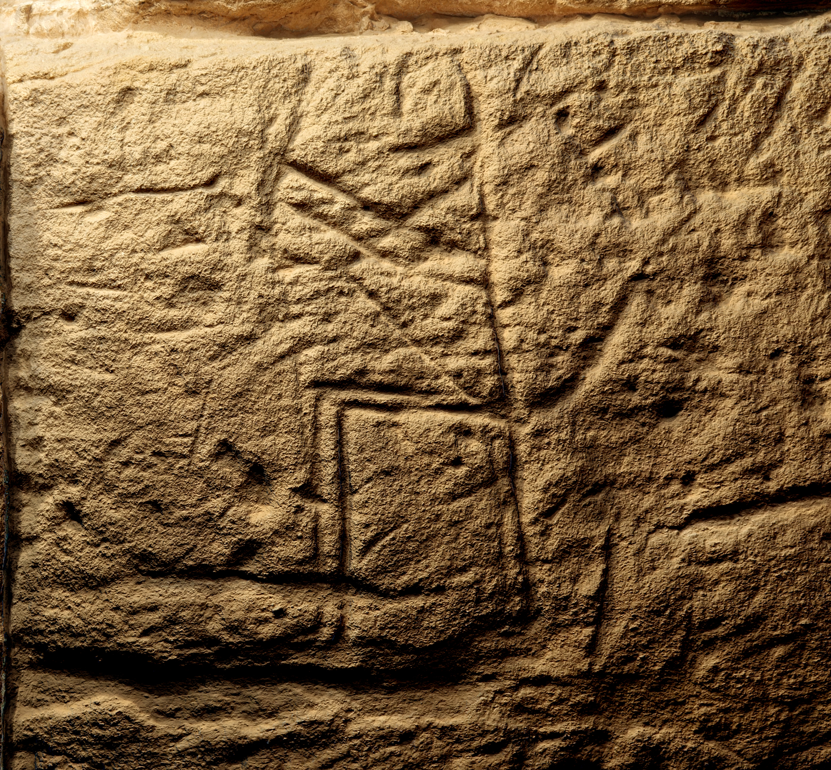 Seated figures are rare in rock art and graffiti, and it is not clear whether this figure would be more likely to represent a ruler or a deity. If a deity, then the god Ptah is the most likely candidate, as he is often depicted holding a staff or scepter in each hand. Ptah, as the patron deity of the Egyptian city of Memphis, was not worshiped in temples in Kush. However, during Kushite control over Egypt as Egypt’s 25th Dynasty (744–656 BCE), the Kushite king Shabaqo installed a stone in the temple of Ptah in Memphis. The inscription, known as the Shabaqo stone, describes Ptah as the creator god.