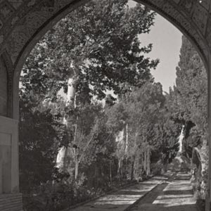 Pope and Wilber used some of these photos in their numerous publications. However, many of the images have never been published and are just beginning to gain scholarly attention. By and large, the photographic holdings reflect Pope and Wilber's scholarly interests. Arthur Upham Pope, an American archaeologist and historian, contributed to the field in numerous ways, including through the publication of his multivolume A Survey of Persian Art.1 Many of the images included in the Survey came from negatives now held in the Visual Resources Collections. He and his coeditor, wife Phyllis Ackerman, were frequent visitors of Iran, and their work helped to elevate Persian art to an internationally recognized field of study.2 Donald Wilber was a close colleague of Pope. He studied the history of the ancient and modern Middle East. After finishing his masters degree in 1932 and prior to pursuing his Ph.D. at Princeton University, Wilber traveled widely in Syria and Iran.3 While in the Middle East he forged a close relationship with Pope and shot many photos of Iranian monuments and gardens. The data and images garnered from his travels abroad were subsequently published in many articles and books.4 Some of his photographs were also included in Pope's Survey, attesting to his involvement in and contribution to this large-scale publication project.