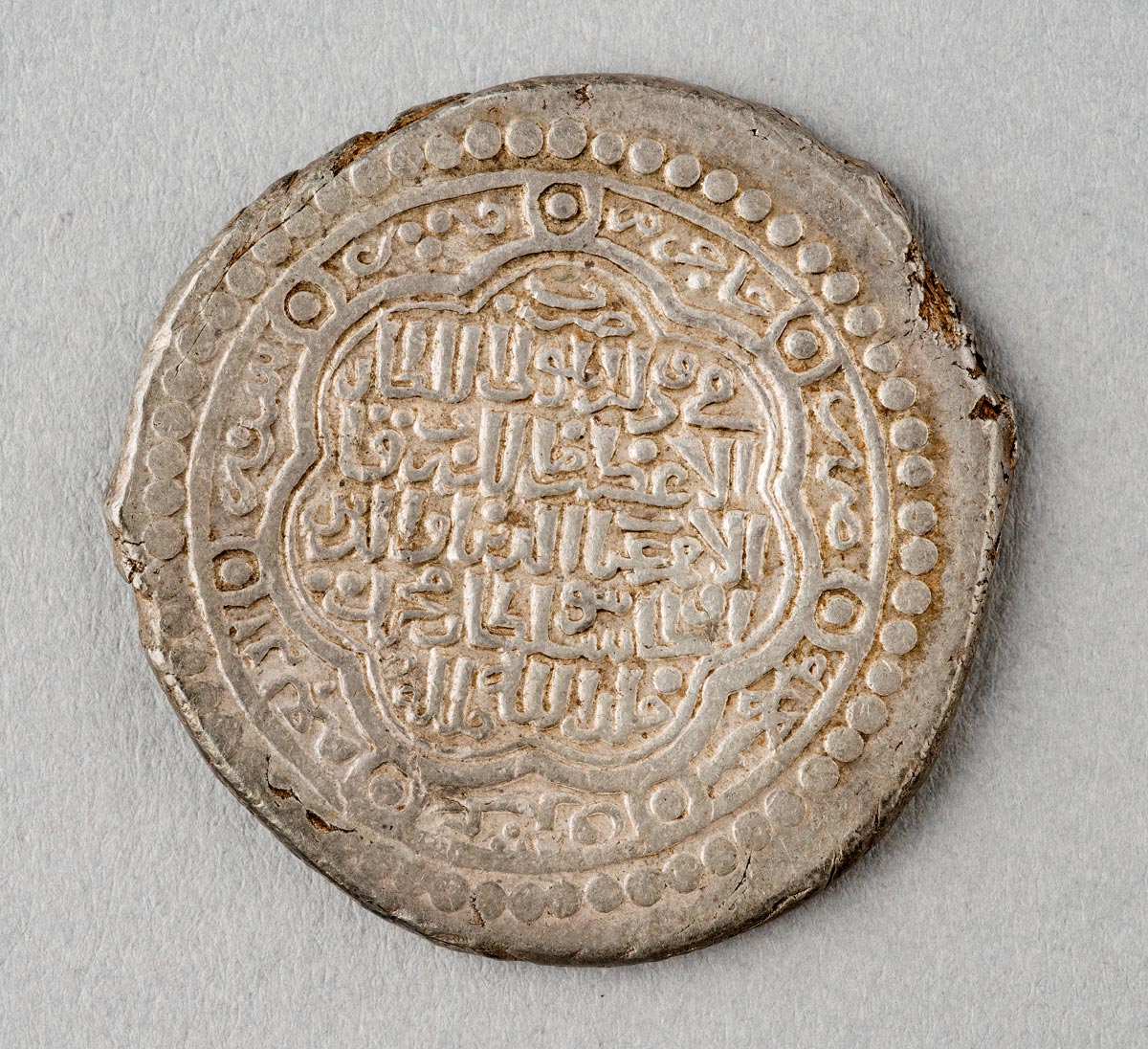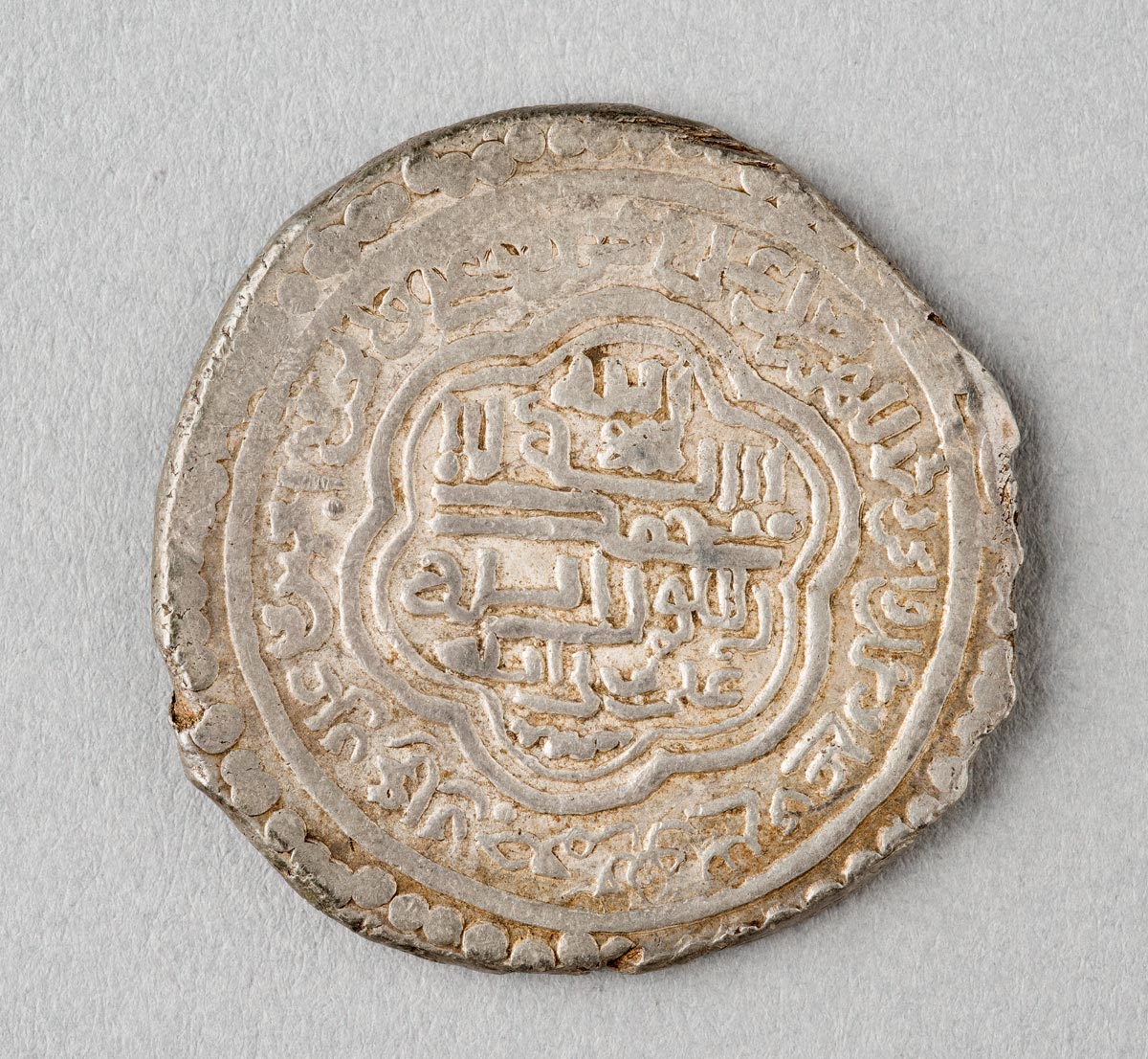 This silver coin was minted in 1314–1315 for Sultan Öljeitü (ruled 1304–1316), a prominent monarch of the Ilkhanid dynasty, which ruled over greater Iran between 1256 and 1335. Öljeitü is known for having converted from Sunni to Shi‘i Islam. This coin reflects his adherence to Shi‘ism as the phrase "‘Ali is the friend of God" (‘Ali wali Allah) is added to the standard profession of faith: "There is no God but God and Muhammad is his Messenger." In addition to this sectarian textual proclamation, the overall design of the coin differs from its predecessors. Rather than set in circular, square, or quatrefoil cartouches, the inscriptions are placed within hexafoil and heptafoil medallions.