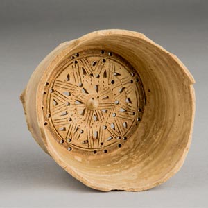 Water filter with rabbit design 10th–12th centuries, Fustat (medieval Cairo), Egypt Hand-tooled and pierced clay Kelsey Museum of Archaeology, 1969.2.120