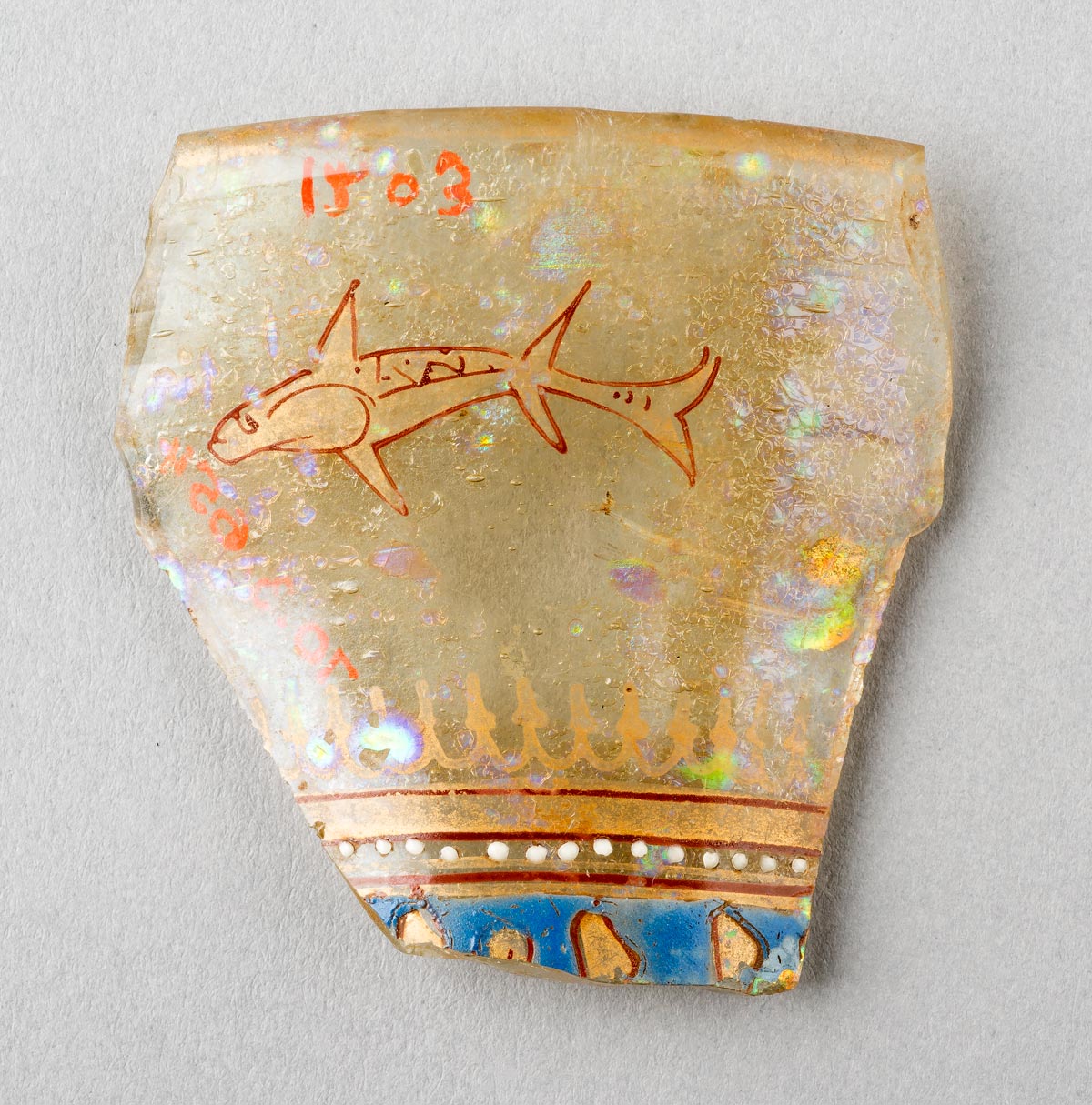Vessel fragment with fish motif 13thβ14th centuries, Egypt Enamel-painted glass Kelsey Museum of Archaeology, 1970.3.654
