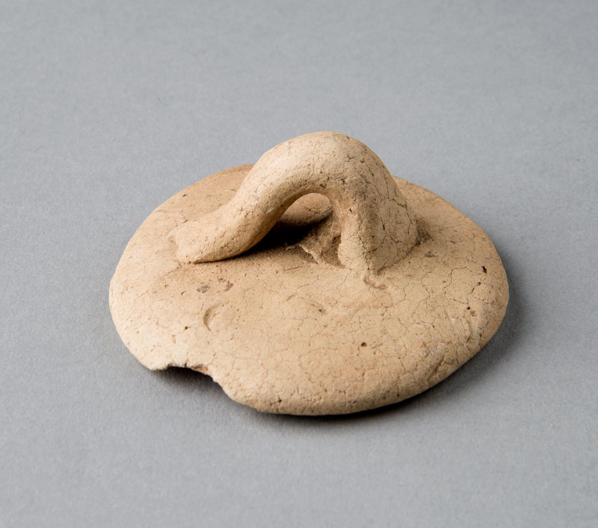 When pressed into soft dough, these small clay stamps create a decorative star design baked into bread. The production of patterned bread was common in Coptic Egypt and thus well established by the Islamic period. In medieval Cairo, individuals had their daily bread baked in communal ovens. Therefore, one of the functions of such stamps was to help distinguish different loaves as they came out of the oven to be retrieved by customers. It also is possible that bread stamps were used as a means of marking or recording bread quotas in the marketplace. While these radial patterns were quite popular, other motifs were applied as well. Among them are animal designs and inscriptions, including the well-wishing exhortation: "Eat well!"