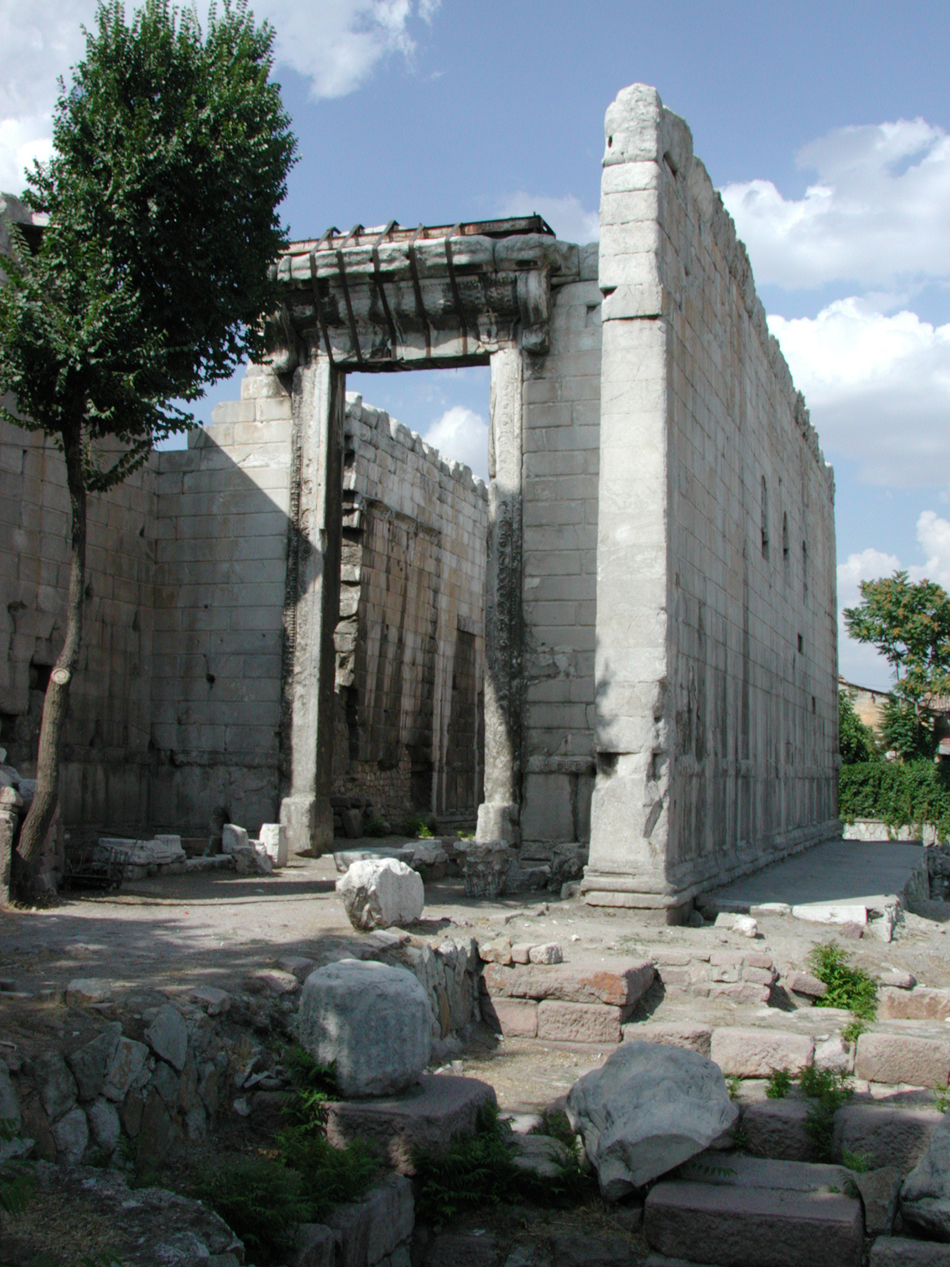 The cella walls and doorway of the Temple of Augustus and Roma.
