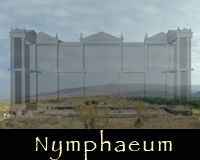 Reconstructions of the monuments from 3D models are superimposed on images of the remains of each monument.