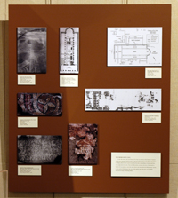 The photograph above was taken in 2002 by Ünal Demirer, then Director of the Yalvaç Museum, during a campaign of cleaning and consolidating the 4th-century mosaic floor in nave of the Church of St. Paul. The photograph depicts a motif that is almost identical to the one on the mosaic fragment from that church, shown below. The floor mosaic is composed predominantly of abstract motifs, including meanders, lozenges, crosses, and other geometric patterns. Some vegetal motifs and a peacock are represented in the solea, the ritual passageway down the center of the eastern end of the nave. Some of the repeated motifs may have been thought to hold magical power to protect the church.