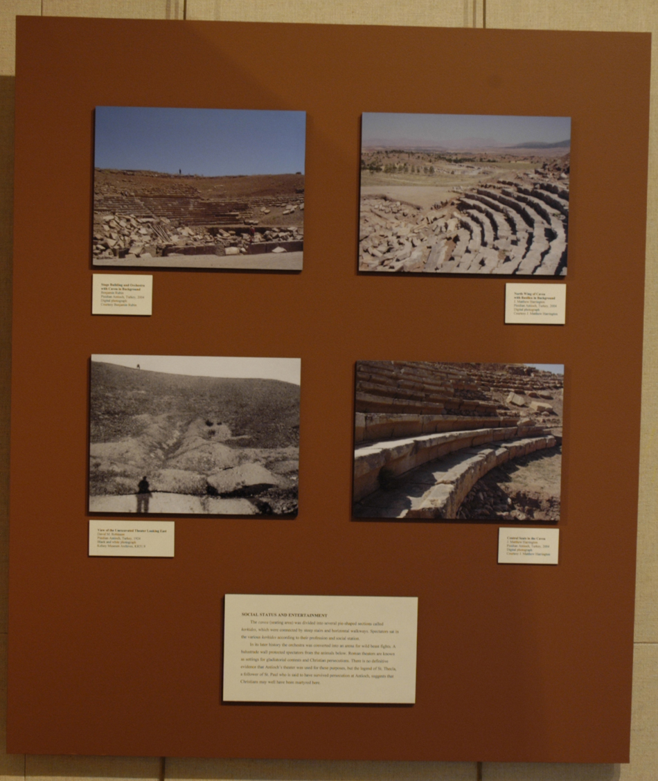 In its later history the orchestra was converted into an arena for wild beast fights. A balustrade wall protected spectators from the animals below. Roman theaters are known as settings for gladiatorial contests and Christian persecutions. There is no definitive evidence that Antioch’s theater was used for these purposes, but the legend of St. Thecla, a follower of St. Paul who is said to have survived persecution at Antioch, suggests that Christians may well have been martyred here.