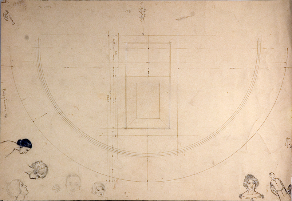 AAR 2403: sketch (with doodles) of the hemicycle and temple of Augustus in the Imperial Cult Sanctuary.