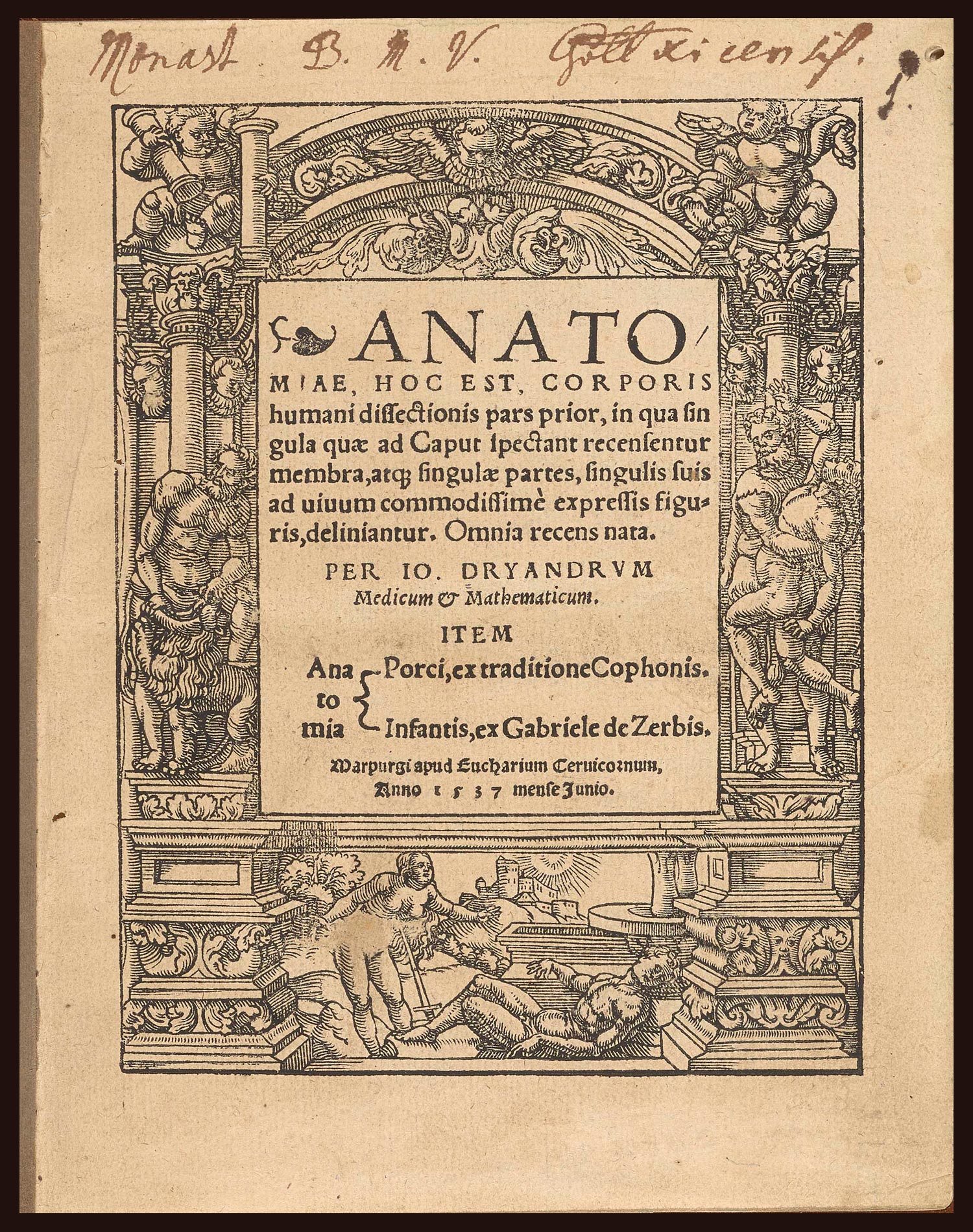 Anatomiae, hoc est, corporis humani dissectionis pars prior, in qua singula quae ad Caput spectant recensentur membra, atque singulae partes, singulis suis ad uiuum commodissime expressis figuris, deliniantur. Omnia recens nata Marburg: Eucharius Cervicorius, 1537 The Le Roy Crummer Collection
