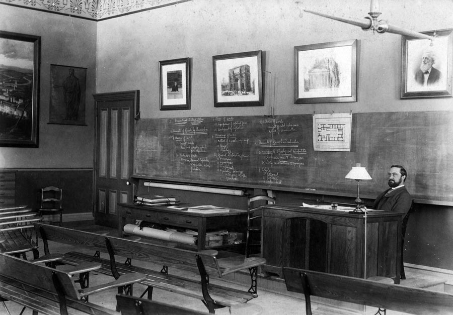 Francis Kelsey in a classroom at the University of Michigan, ca. 1900. Bentley Historical Library digital image. Newspaper article, Patricia Diel Arthur/Ruth Kelsey Diel Collection