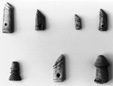 At left are seven phallus amulets of varying degrees of abstraction. |
