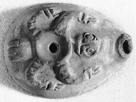 Frog lamp Terracotta; Karanis, Egypt: Locus 33-B507B-K; Roman period (2nd-4th c. CE); 5.4 cm h., 8.7 cm w., 11.3 cm l.; Source: University of Michigan excavation, 1933; Kelsey Museum 22393