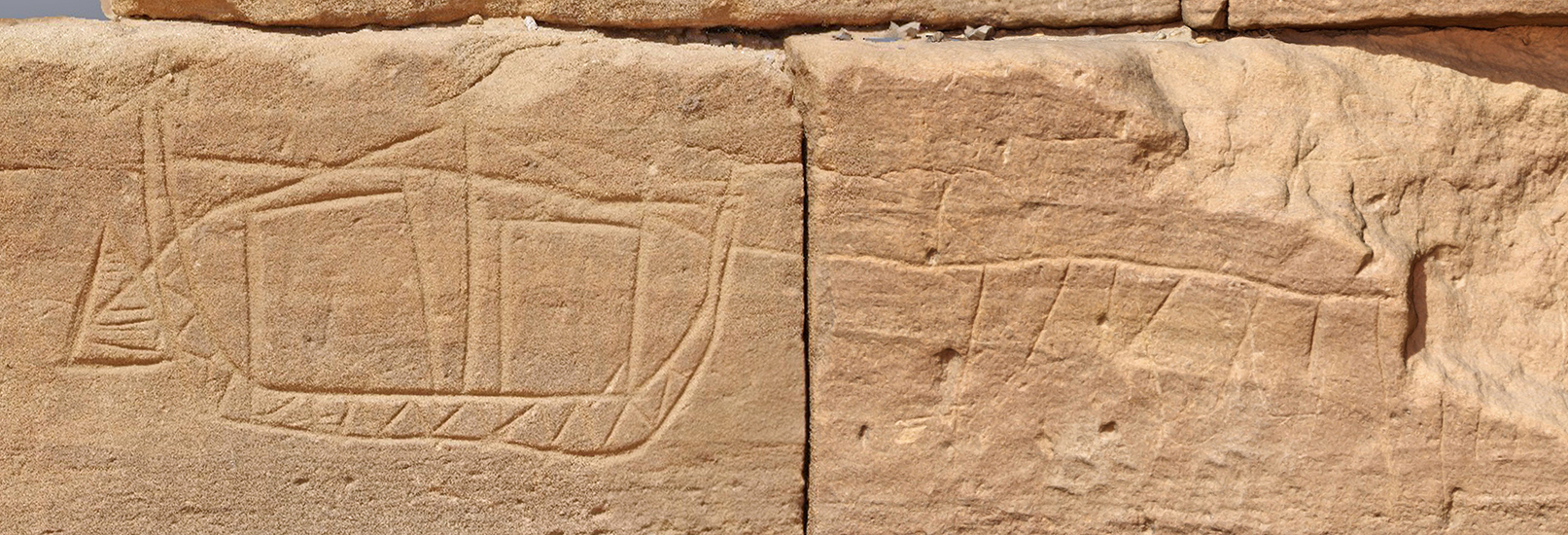 The boldly incised boat is one of the clearest of its type. From stern to bow, the hull is filled by a zigzag. The gunwale is flat, while the bottom of the hull tapers slightly toward the stern and reaches its maximum width near the bow. Both bow and stern curve sharply upward, the stern rising taller than the bow. The upper three centimeters of the stone are damaged, removing the mast, stays, and the tip of the stern, but very worn lines at the top of the stern indicate that it was cruciform, with splayed arms as the footed cross.