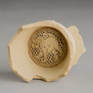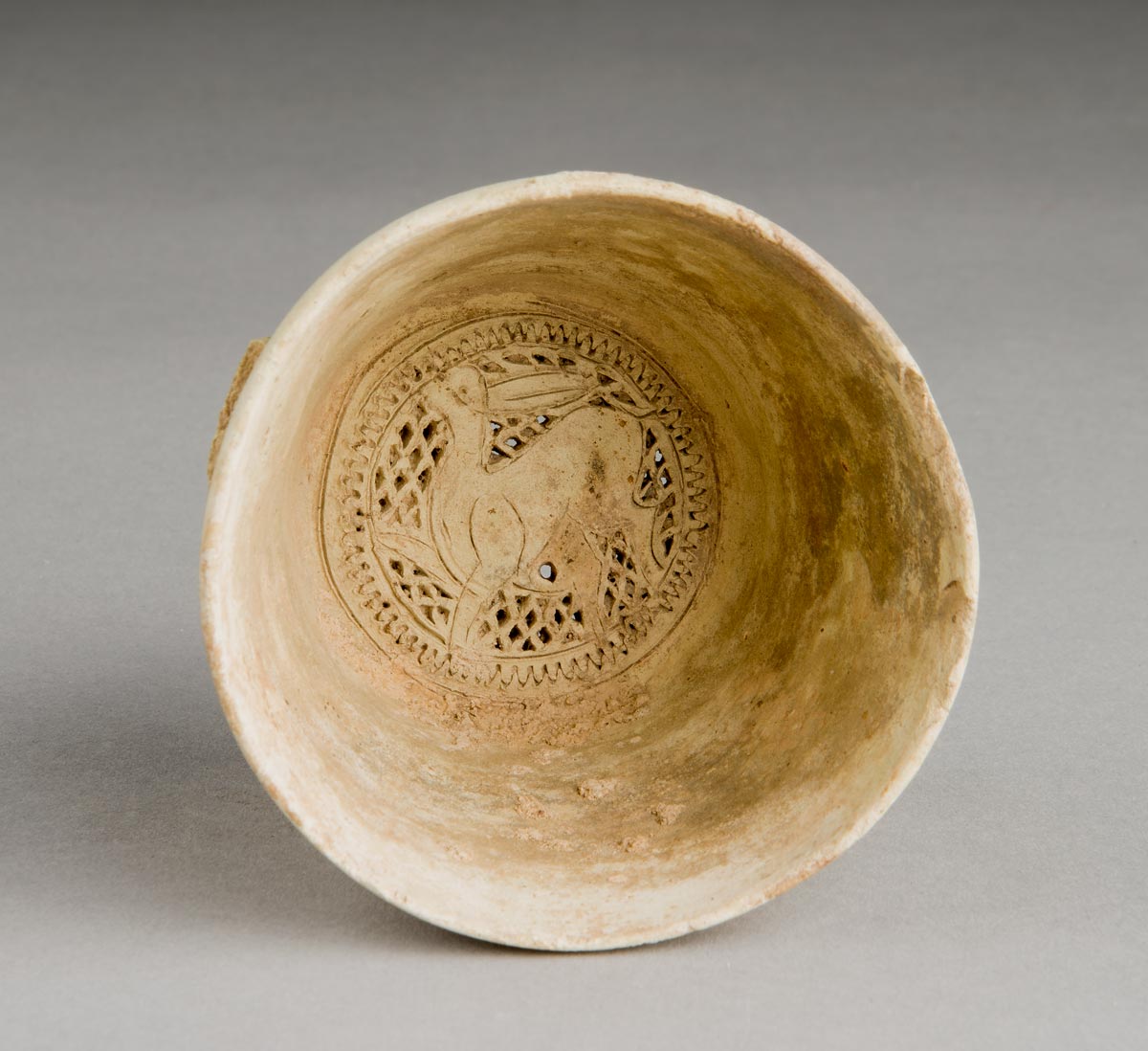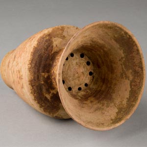 Water filter with rabbit design 10th–12th centuries, Fustat (medieval Cairo), Egypt Hand-tooled and pierced clay Kelsey Museum of Archaeology, 1969.2.120