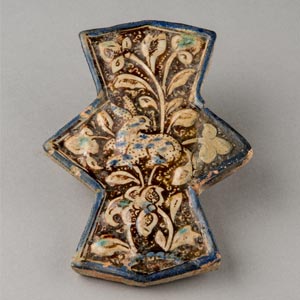 This lively rabbit pierced into the neck of a ceramic water filter recalls the minute rabbits woven into a tapestry also from the Fatimid period. Indeed, animals were popular decorative motifs on everyday objects in medieval Egypt. While serving the primary purpose of filtering water and preventing unwanted impurities from entering the vessel, this filter design aesthetically enhances an otherwise utilitarian object. Playing with the function of this object, the prancing rabbit was perhaps meant to appear as if splashing in a water puddle.
