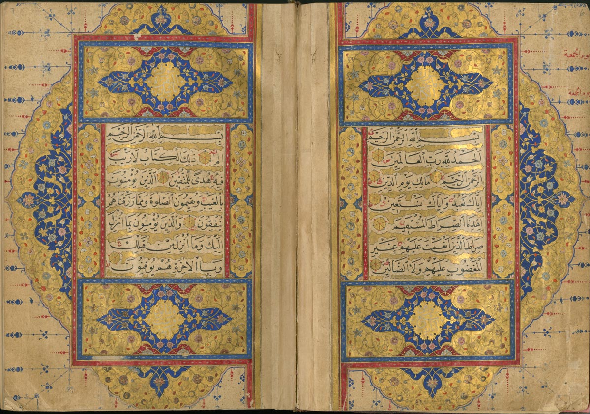 Illuminated double-page opening of the Qur’an Dated AH 1032/1623 CE, Ottoman lands Ink and gold on paper Special Collections, Hatcher Graduate Library, Isl. Ms. 167