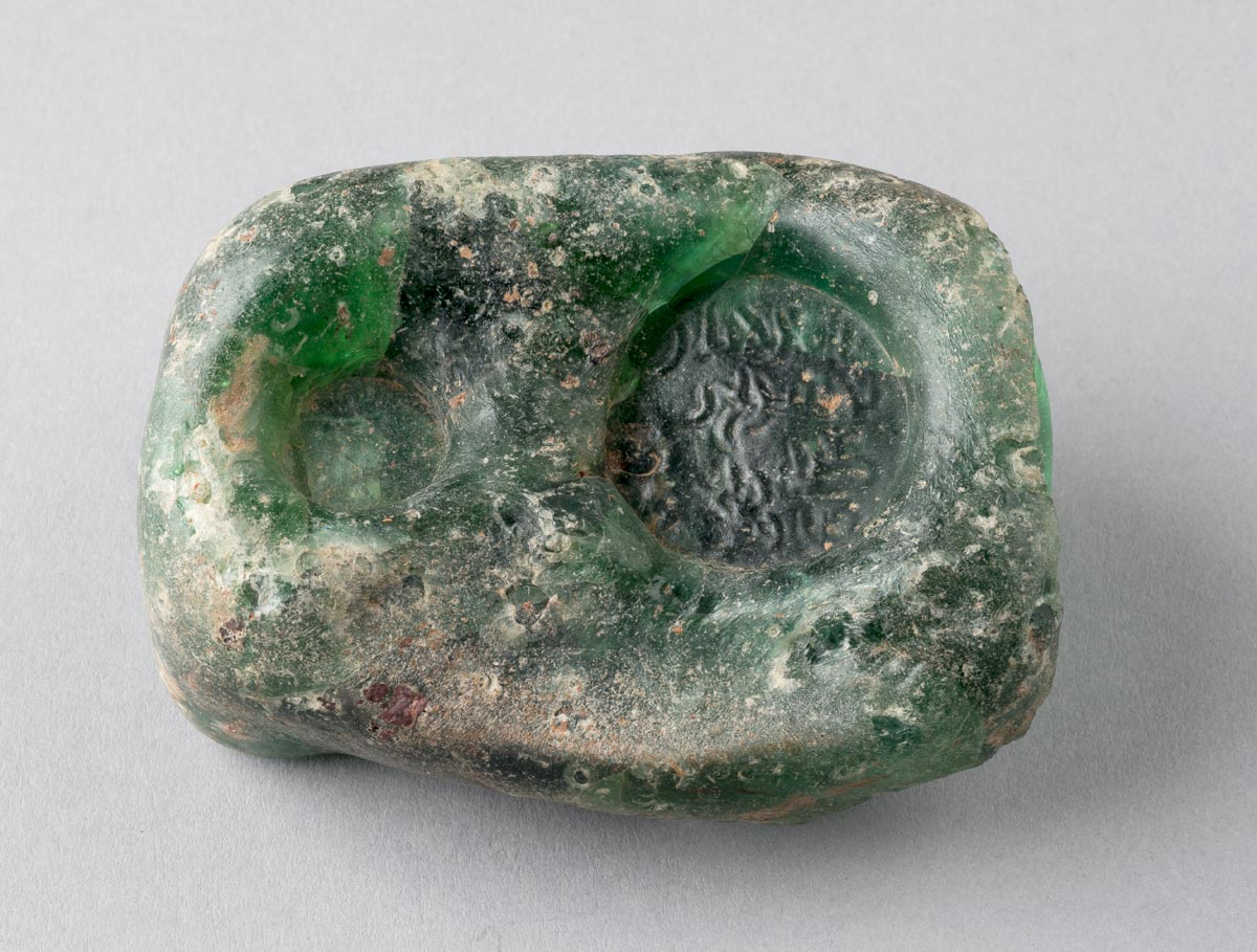 Large weight 8th–12th centuries, Egypt Green glass Kelsey Museum of Archaeology, 1964.2.14